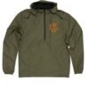 The Quarter-Zip Windbreaker is typically made from water resistant 82gm 100% poly body fabric and features a 1/2 front zipper, scuba neck, mesh lined 3 panel hood, welt pockets with mesh pocket bags, elastic cuffs, and a tightening toggle at the waistband.